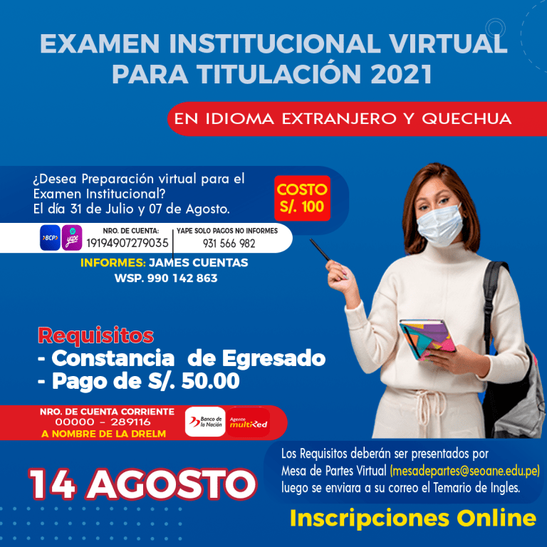 EXAMEN INSTITUCIONAL VIRTUAL PARA TITULACIÓN 2021 (REPROGRAMADO)Correo de Mesa de…