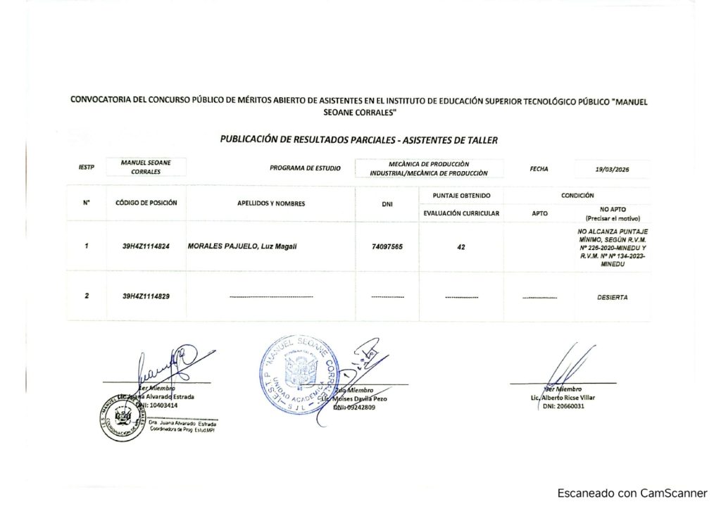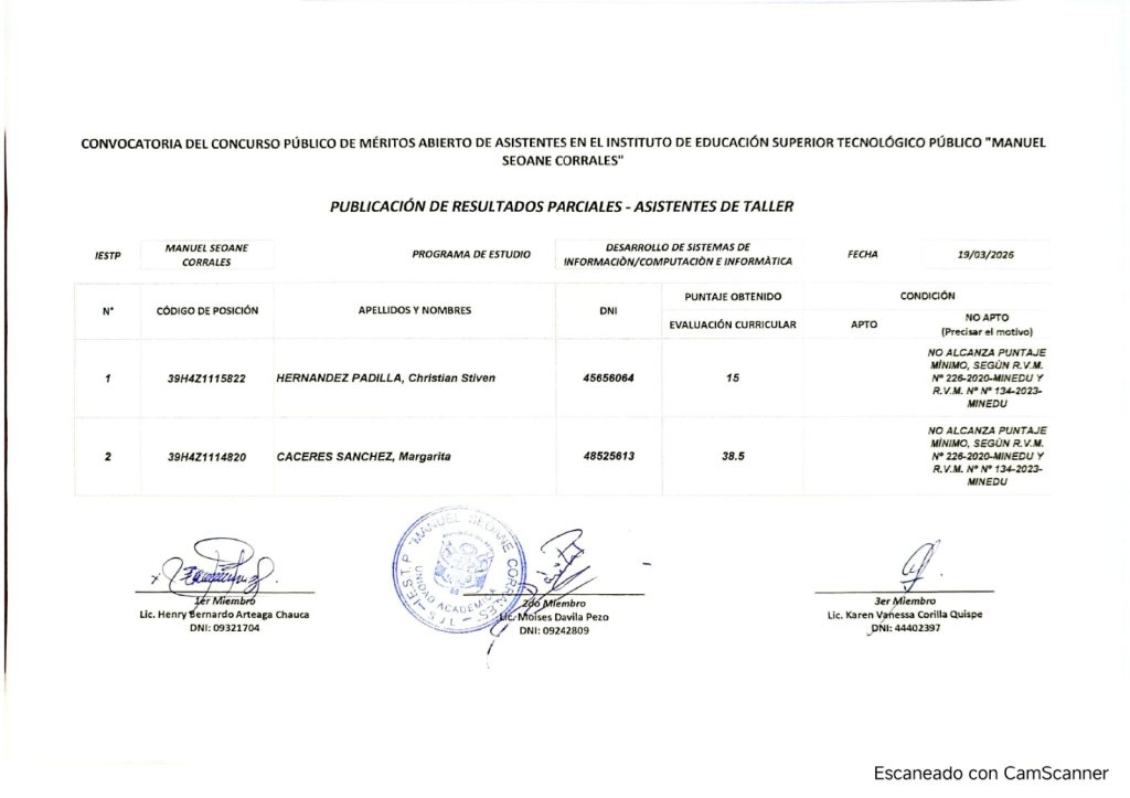 PUBLICACIÓN DE RESULTADOS PARCIALES – ASISTENTES DE TALLER 2026
